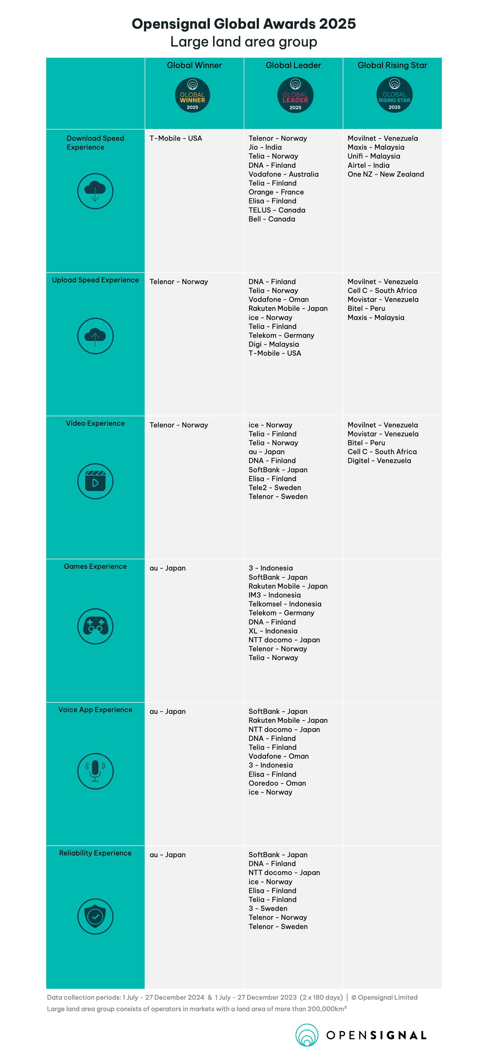 Theo báo cáo Global Mobile Network Experience Awards 2025 của Opensignal, KDDI là nhà mạng đạt vị trí Global Winner ở ba hạng mục quan trọng gồm độ ổn định kết nối, trải nghiệm gọi qua ứng dụng và trải nghiệm chơi game. Đây đều là những chỉ số phản ánh trực tiếp khả năng duy trì kết nối mượt mà trong điều kiện sử dụng thực tế, đặc biệt quan trọng với du khách khi di chuyển và sử dụng các ứng dụng hằng ngày.