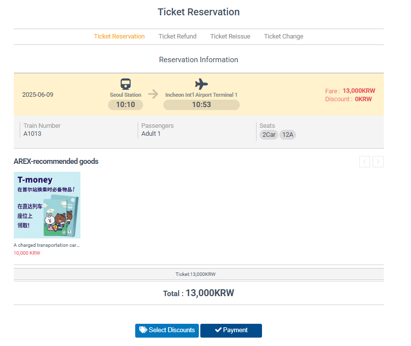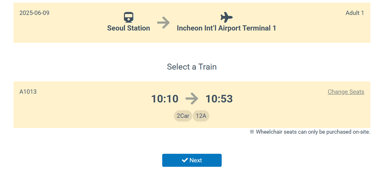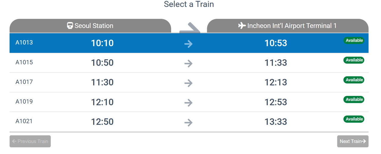 Bước 2: Chọn điểm đi là Incheon Airport và điểm đến là Seoul Station